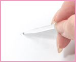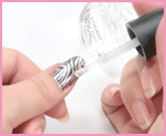 ②アクリルスティックの尖った部分にトップコートを少し付けます。![]() |