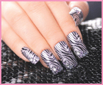 ⑥縞模様とストーンによるネイルアートの完成です。![]() |